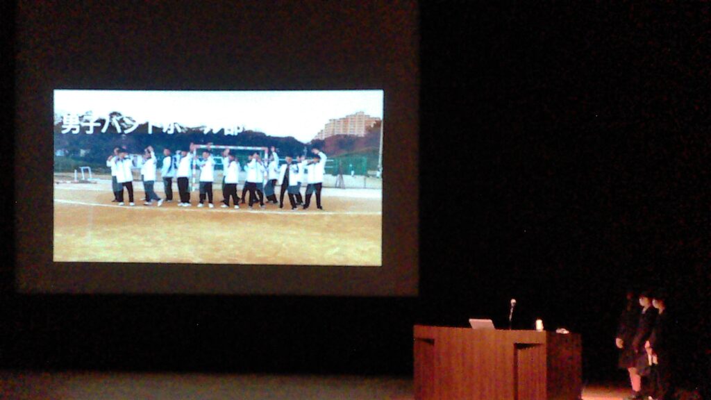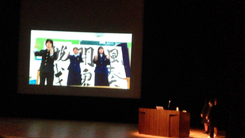 卒業を控えた3年生への感謝とお祝いの気持ちを込めて、全部活動の生徒が参加したダンス動画や、県商を離任された先生方からのお祝いのメッセージ動画が上映されました。