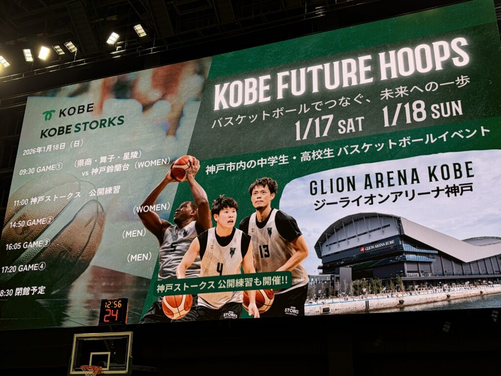 2026年1月18日(日)、女子バスケットボール部は、昨年4月にオープンしたばかりの新しい体育館「GLION ARENA KOBE」にておこなわれたバスケットボールイベント 「KOBE FUTURE HOOPS 」 に参加しました。