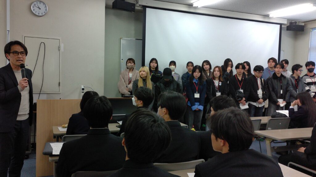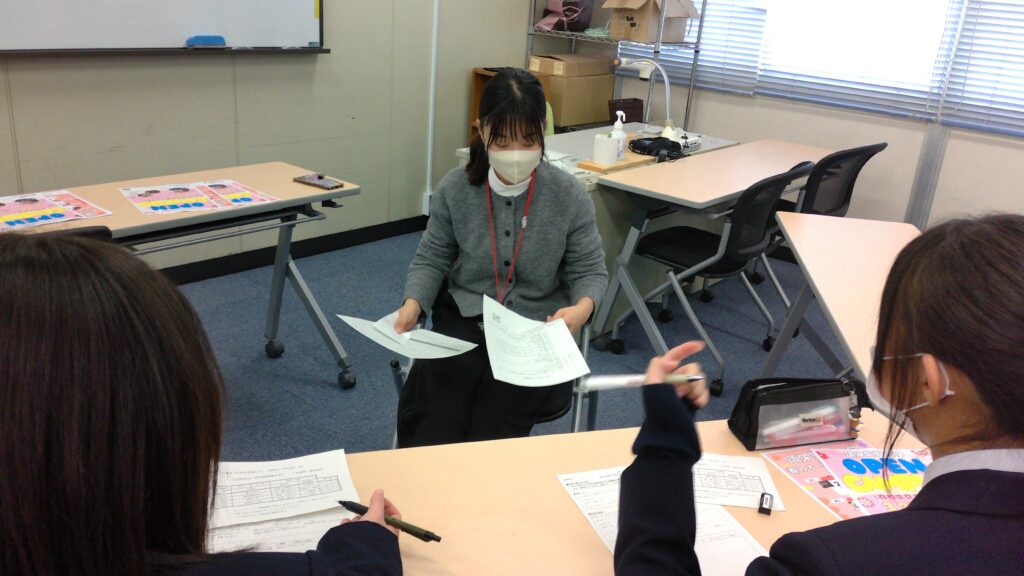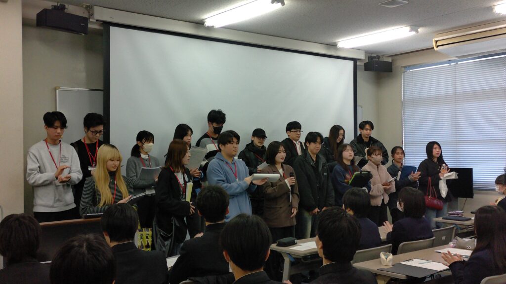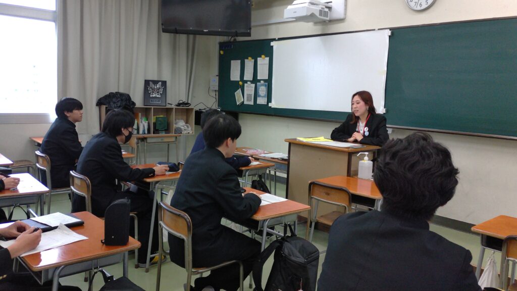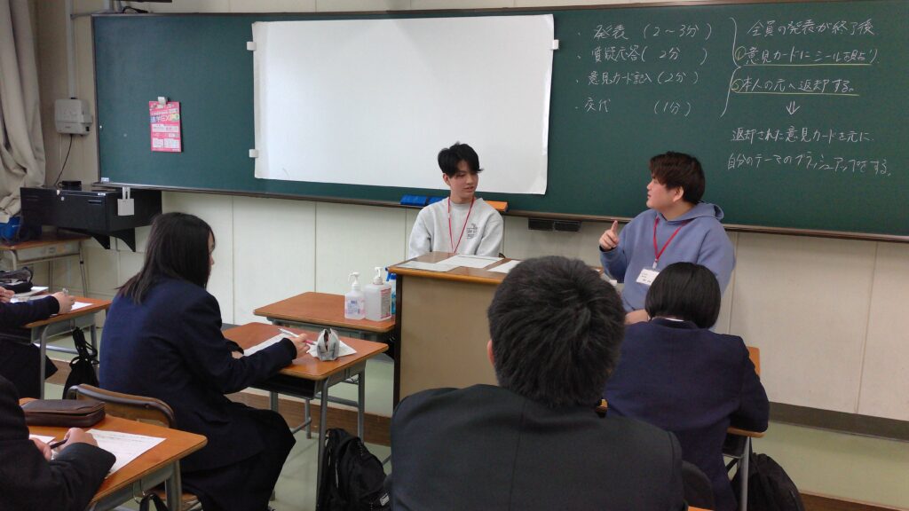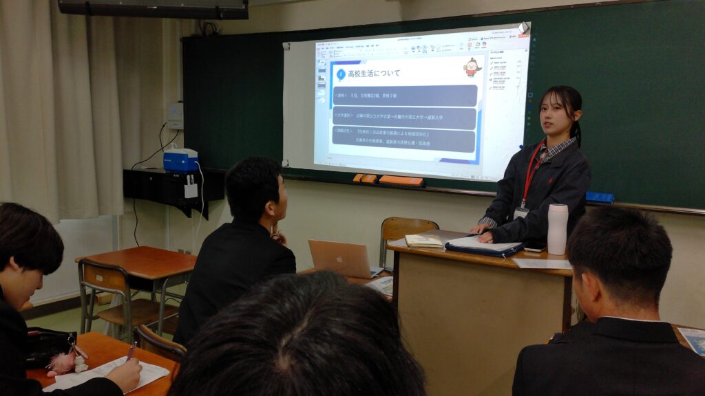3月19日(木)、2年生を対象に「大学生を囲んで」を実施しました。本校を卒業して4年制大学・短期大学に進学した先輩18名が参加してくれました。横浜国立大学、滋賀大学、高知大学、山口大学、兵庫県立大学、福知山公立大学、関西大学、立命館大学、近畿大学、京都産業大学、大阪経済大学、神戸学院大学、頌栄短期大学に在籍中の学生です。「実際の学生生活(勉強面、生活面等)について」「大学入試について特に頑張っていたこと」等を座談会形式で話をしていただきました。県商で学び、大学に進んだ先輩方の話を聞き、自分たちの1年後の未来を具体的に考える機会となりました。遠方にも関わらず多数の先輩が参加してくれました!ありがとうございました。