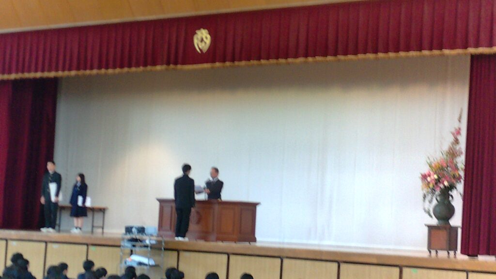 表彰式では、春休み期間中にさまざまな分野で活躍した生徒のみなさんが表彰されました。受賞されたみなさん、本当におめでとうございます。