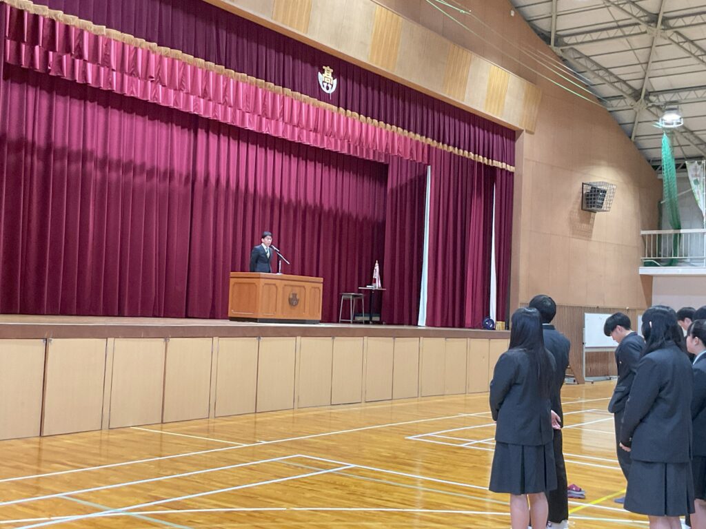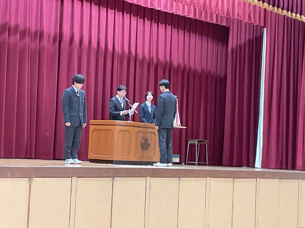 次に陸上部と写真部の表彰伝達式が行われました。式後、壇上にいる選手、部員のそれぞれに生徒と職員が日々の努力と研鑽を称える拍手を送りました。