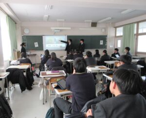 1月10日、からと青少年育成協議会・唐櫃ふれあいのまちづくり協議会の主催により、本校グラウンドにて、たこあげ・もちつき大会がありました。好天に恵まれ、地域の子どもたちも凧あげ・もちつきを楽しんでいる様子でした。本校の生徒もお手伝いで参加し、貴重な経験となりました。