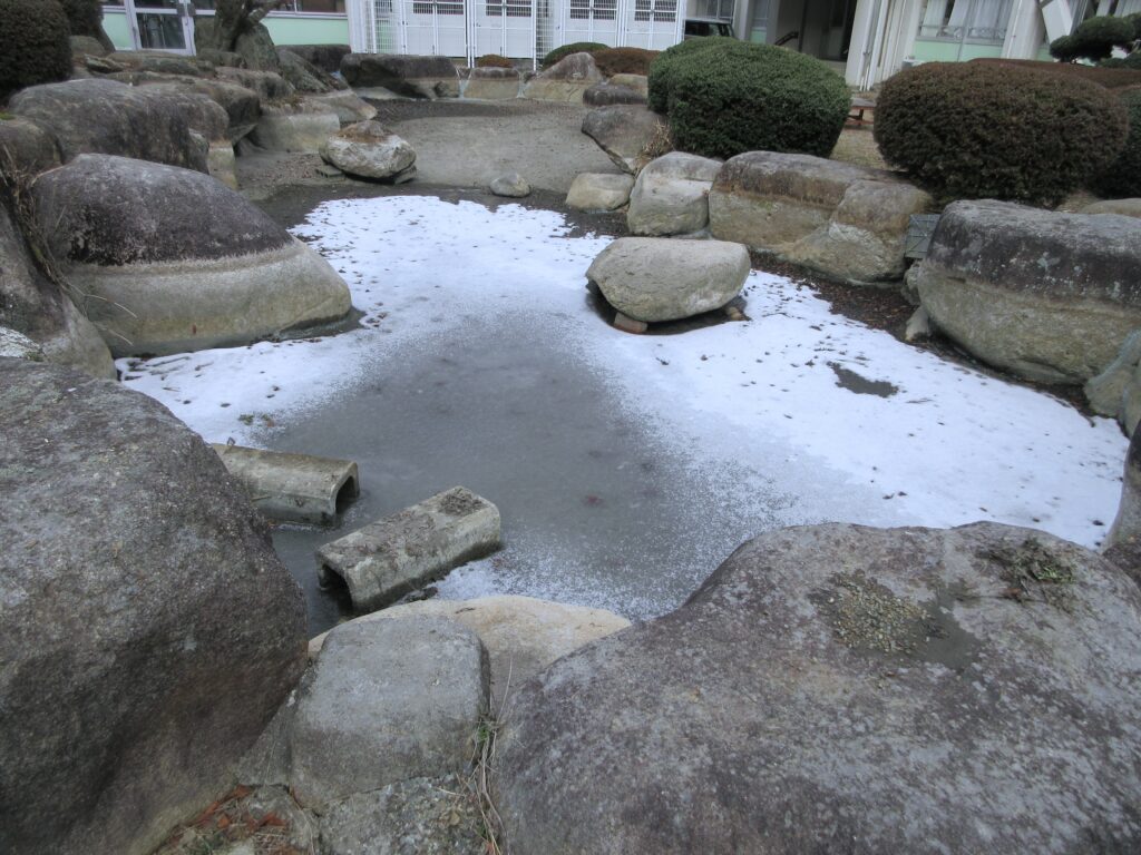 先週から、大寒波で、学校のグラウンドに雪が積もりました。今はほとんど溶けていますが、池は凍ったままです。今週中頃からまた、寒波に見舞われそうです。3年生は学年末考査・大掃除等、2年生は普段の学校生活を、寒さにめげず、体調管理をしっかりして、過ごして欲しいです。