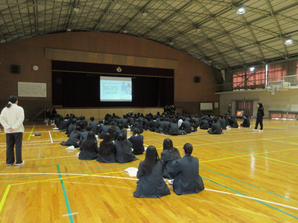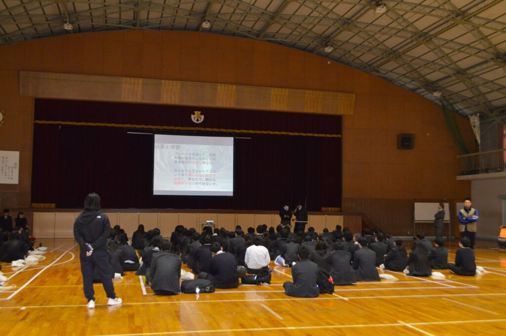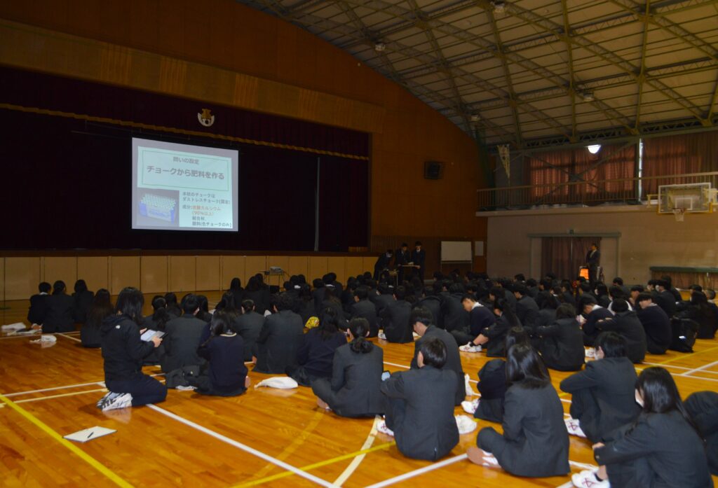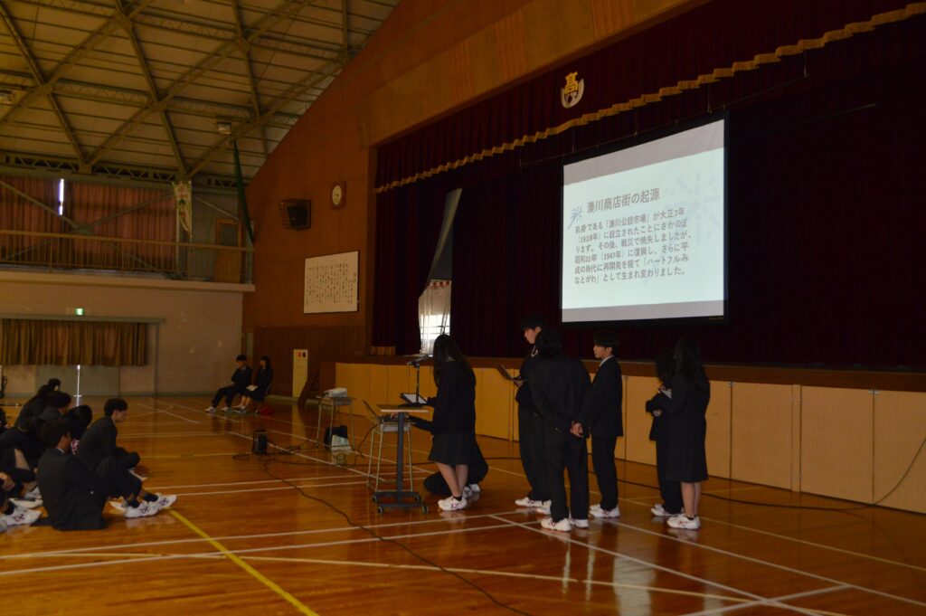 3月17日(火)に、2年生が「総合的な探究」の校内発表会を行いました。「人間と演出表現がもたらす効果」、「チョーク中のカルシウム成分の有効活用法」、「フェアトレード商品の認知度と促進」、「湊川の活性化~東山商店街とインバウンド需要について~」、「顧客獲得法‐消費者心理学の応用‐」と多岐に渡る事項について、発表がありました。日頃から、様々な分野に興味を示し、思案を巡らさなければ思いつかないテーマです。パワーポイントによる説明もわかりやすく、いずれの班も丁寧に取り組んでいました。
