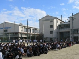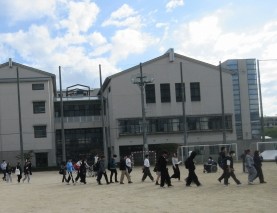 今回は、校舎内での出火による火災を想定し、適切に避難できるようにすることを目的として実施しました。校内放送の指示に従って、グラウンドへ避難をしました。また、事前に動画を使って、煙が出ている時の対応について学びました。
