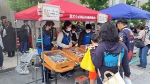 阪神西宮駅南側の西宮中央商店街で行われた「戎参道まつり」に、運営ボランティアとして初めて参加しました。当日は秋晴れの空で、たくさんの方が訪れる中、生徒たちは交通整理の仕事や子どもたちを相手にしたゲームの運営など、一生懸命にがんばっていました。