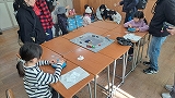 <校内防災クイズラリー> 地域の避難所となっている本校を回りながら、クイズラリー形式で防災について学んでいただきました。液状化現状についての実験も行いました。