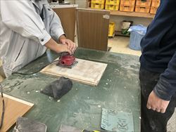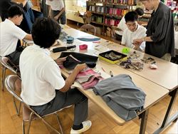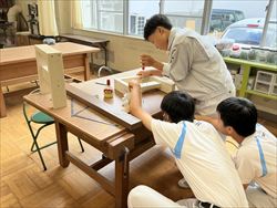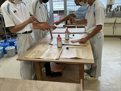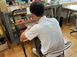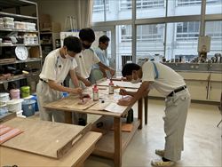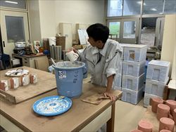 3年生選択授業の風景です 4時間連続の授業でも集中力を切らすことなくバザー商品や自分の作品作りに 取り組んでいます <陶工>