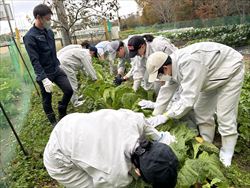 選択2年生と1年生で育てた白菜が大きく育ちました。 選択2年生が育てた白菜は、なんと4kg以上の大物が収穫できました。![]()