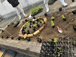 話し合いながら、レイアウトを考えて植え付けを行い、