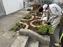 話し合いながら、レイアウトを考えて植え付けを行い、 思いの詰まった花壇が完成しました。 春が待ち遠しいですね。