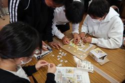 冬季休業が間近に迫った12月22日(月)に、寄宿舎三大行事のひとつ 「お楽しみ会」が、14時からロビーで行われました。 A・B・C・Dの4チームに分かれ、4つのゲームに参加し、 1位チームから景品を選べることから、高得点をめざしました。 笑顔あふれる賑やかで楽しい時間を過ごしました。 「パズルを完成させよう!」 1チームに2種類のパズル。チーム内で2グループに分かれ、パズルを完成させます。 制限時間は20分でしたが…![]()
