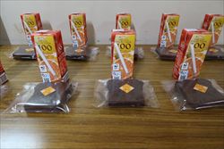 そして、今日のデザートはチョコレートたっぷりのショコラケーキとオレンジジュース!