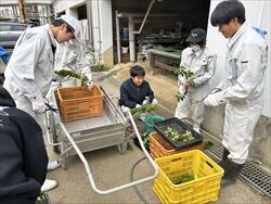 2025年最後の授業でクリスマスリース作りに取り組みました。 まず、リースに込められた意味について学び、農業と関わりの深い「豊作祈願」が 込められていることを理解しました。 そのうえで材料準備! 装飾に使う葉や実は学校周辺の山に採りに行き、扱いやすい大きさにカットしました。![]()
