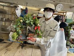 今回リースの土台となる枝は、県立農業高等学校から分けていただいた「ブドウのツル」