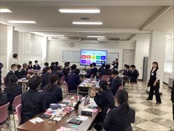 1月14日(水)、資生堂ジャパン株式会社様を講師にお招きし、 身だしなみ講座を実施しました。 はじめに「色と心」についてのお話を聞きました。 手元の色カードの中から好きな色を選び、そのカードの裏には、 色のイメージや、その色を選ぶ人の性格などが書かれていました。 生徒たちからは「当たってる!」といった声も上がり、 和やかな雰囲気でスタートしました。![]()