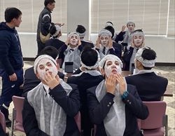 ヘアセットもメイクアップも、コツを教わりながら一人ひとりが取り組み、