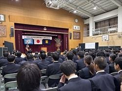 最後は校歌斉唱で、心をひとつにして式典を締めくくりました。 式典の後には「記念公演」として、生徒3名によるフォーラム(作文発表)が行われました。 それぞれが学校生活の思い出や成長への思いを自分の言葉で堂々と発表しました。