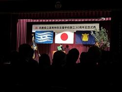 1月23日(金)、兵庫県立高等特別支援学校創立30周年記念式典が挙行されました。当日は、生徒会の生徒2名が司会を担当し、式典は終始穏やかな雰囲気で進められました。 兵庫県教育委員会教育次長からのご挨拶、記念事業実行委員長のご挨拶に続き、 生徒会長が生徒代表として、日頃の学校生活への思いや感謝の気持ちを述べました。