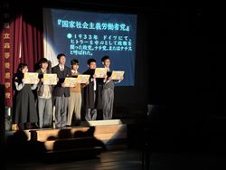 ●2日目(1月24日)一般公開日 ~1年生~ 〇音楽発表 合奏「この地球の続きを」 歌唱「空」 〇学年発表 人権(差別)学習発表「平等な世界を目指すために」