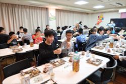 食事中のBGMは3年生のリクエスト曲。