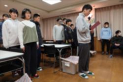 卒業生からメッセージをいただきました。一人ずつ前に出てお願いします。