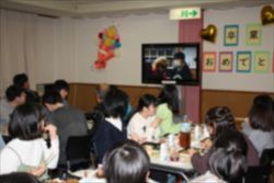 食事中のBGMは3年生のリクエスト曲。 途中から「スライドショー」が流され、3年間の歩みを振り返ります。 懐かしい3年前の幼い顔に、笑顔がこぼれる場面もありました。 <第二部:記念品贈呈・メッセージ>