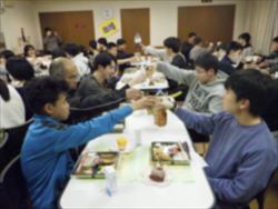 「卒業生のみなさんのご健闘を祈って乾杯!」 夕食は特注弁当、