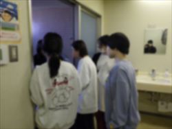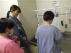 入浴時間になりました。1年生は初日のため、入浴マナーを聞いてから、今日は最後に入浴します。