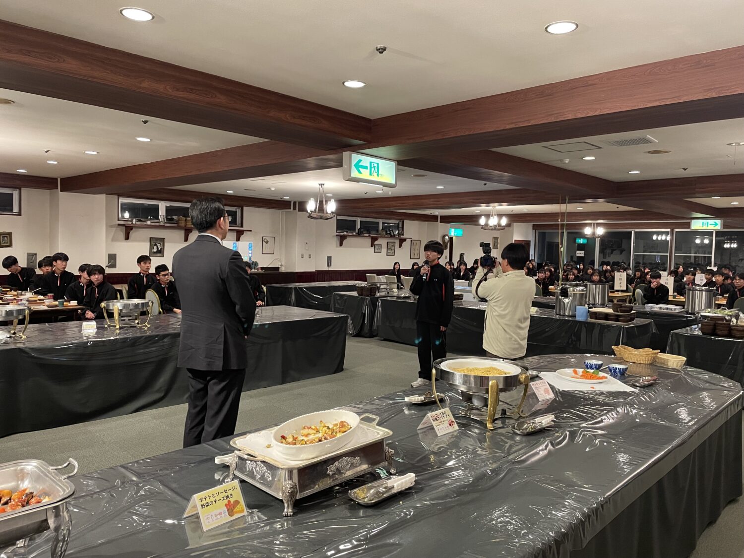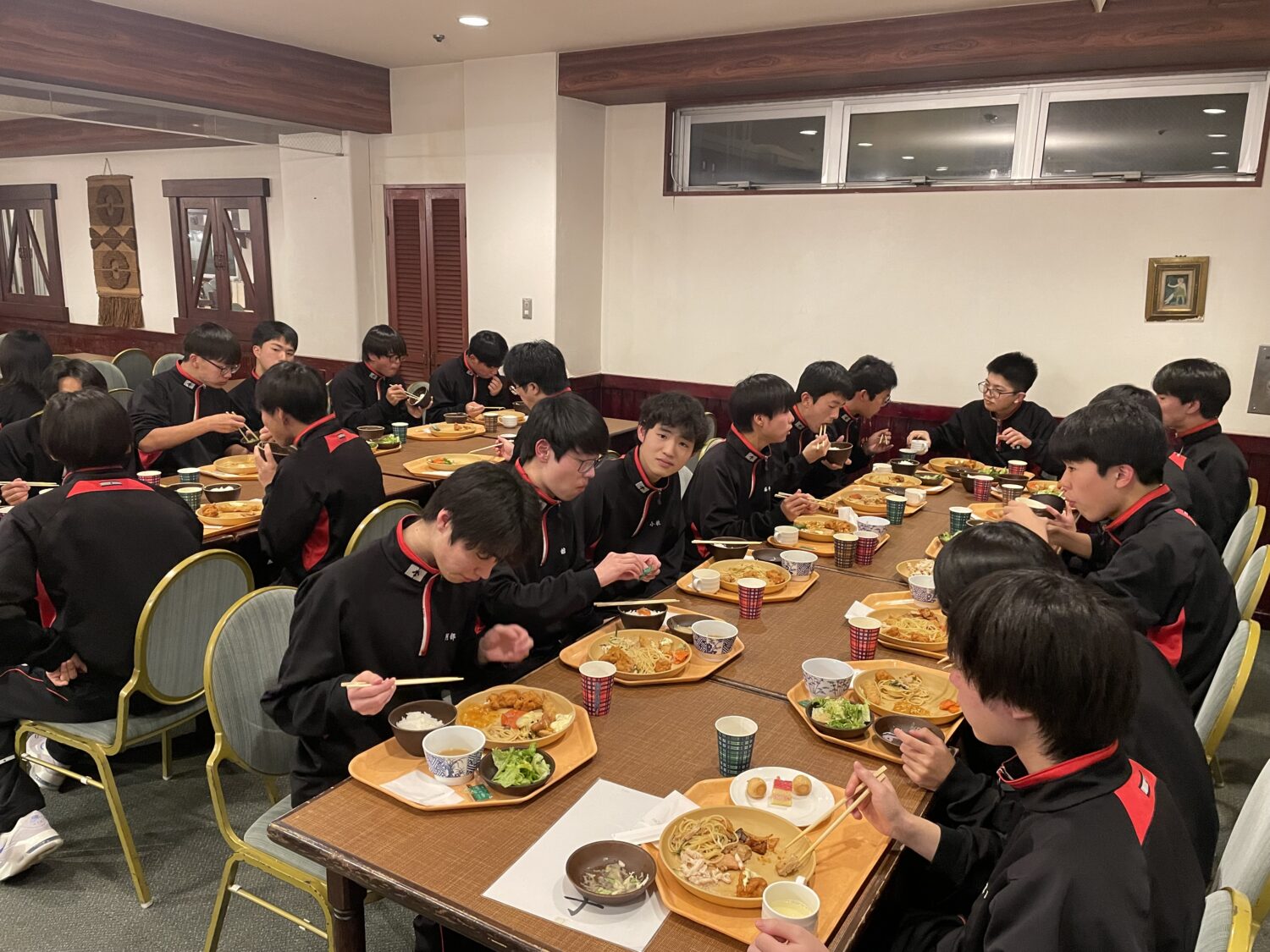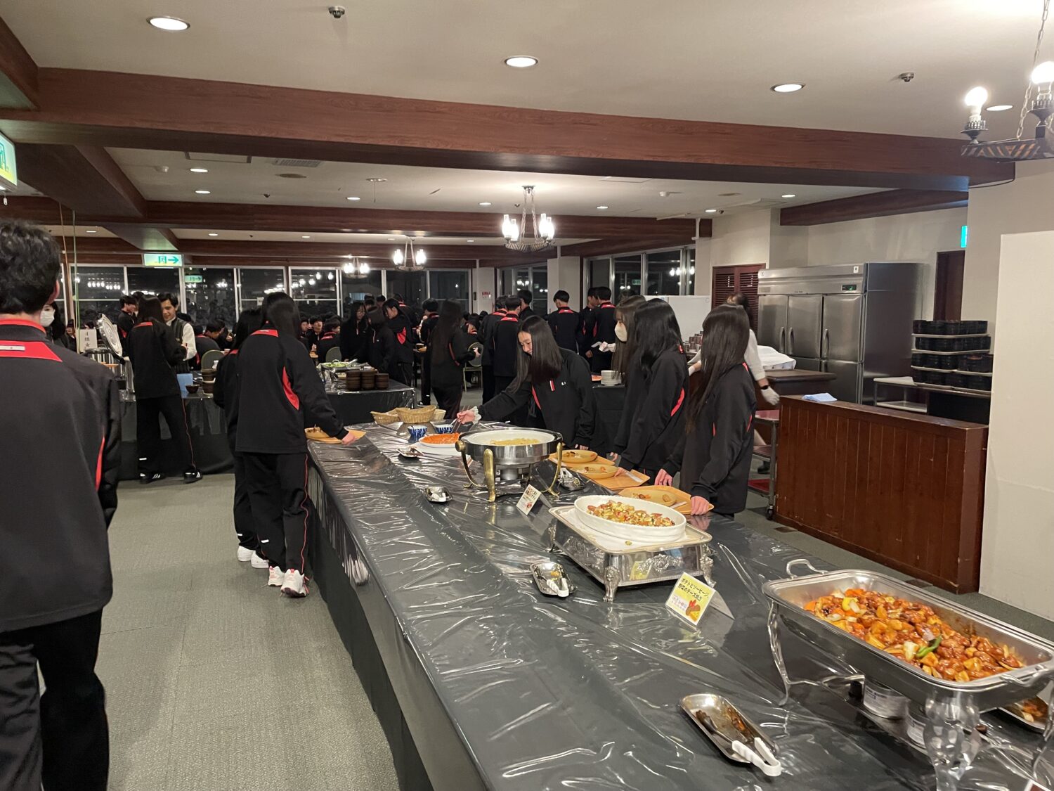 夕食はバイキングです!明日の長い実習へ向けて、もりもり食べました。