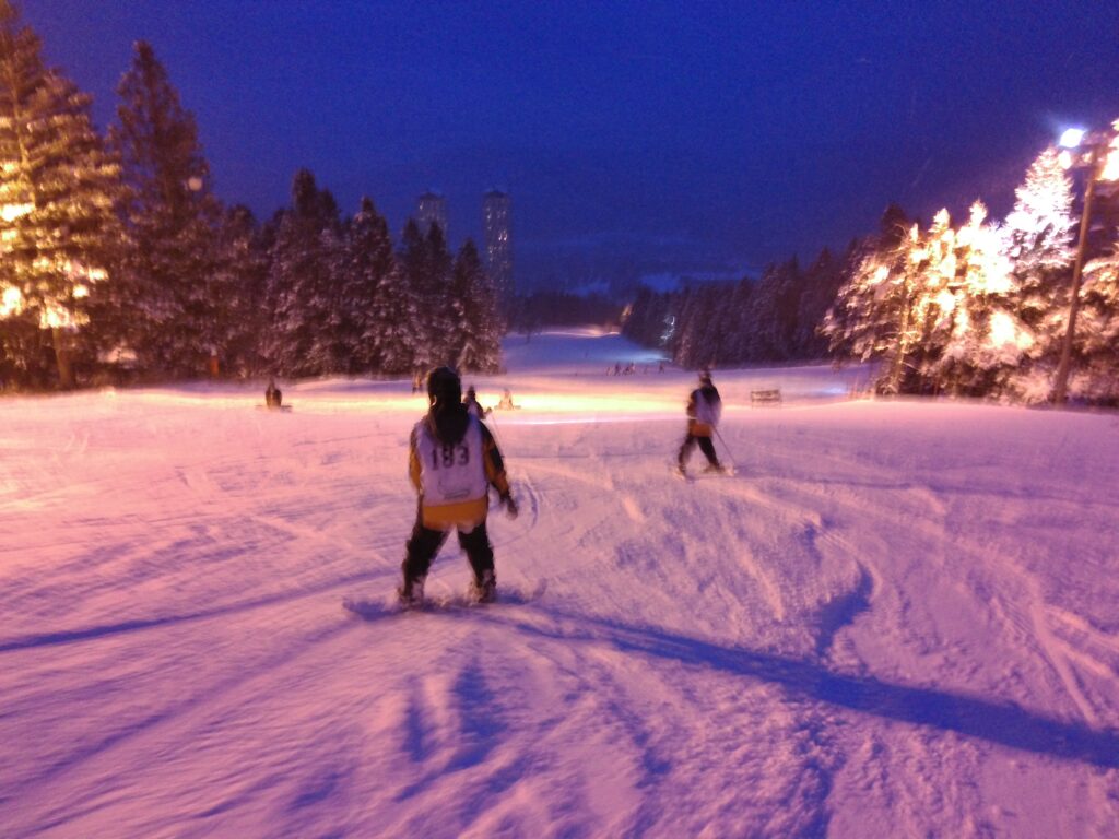 閉校式を行い、インストラクターの方々に2日間の感謝を伝えました。閉校式後のナイタースキーには半数以上の生徒が参加し、最後の滑りを楽しみました。