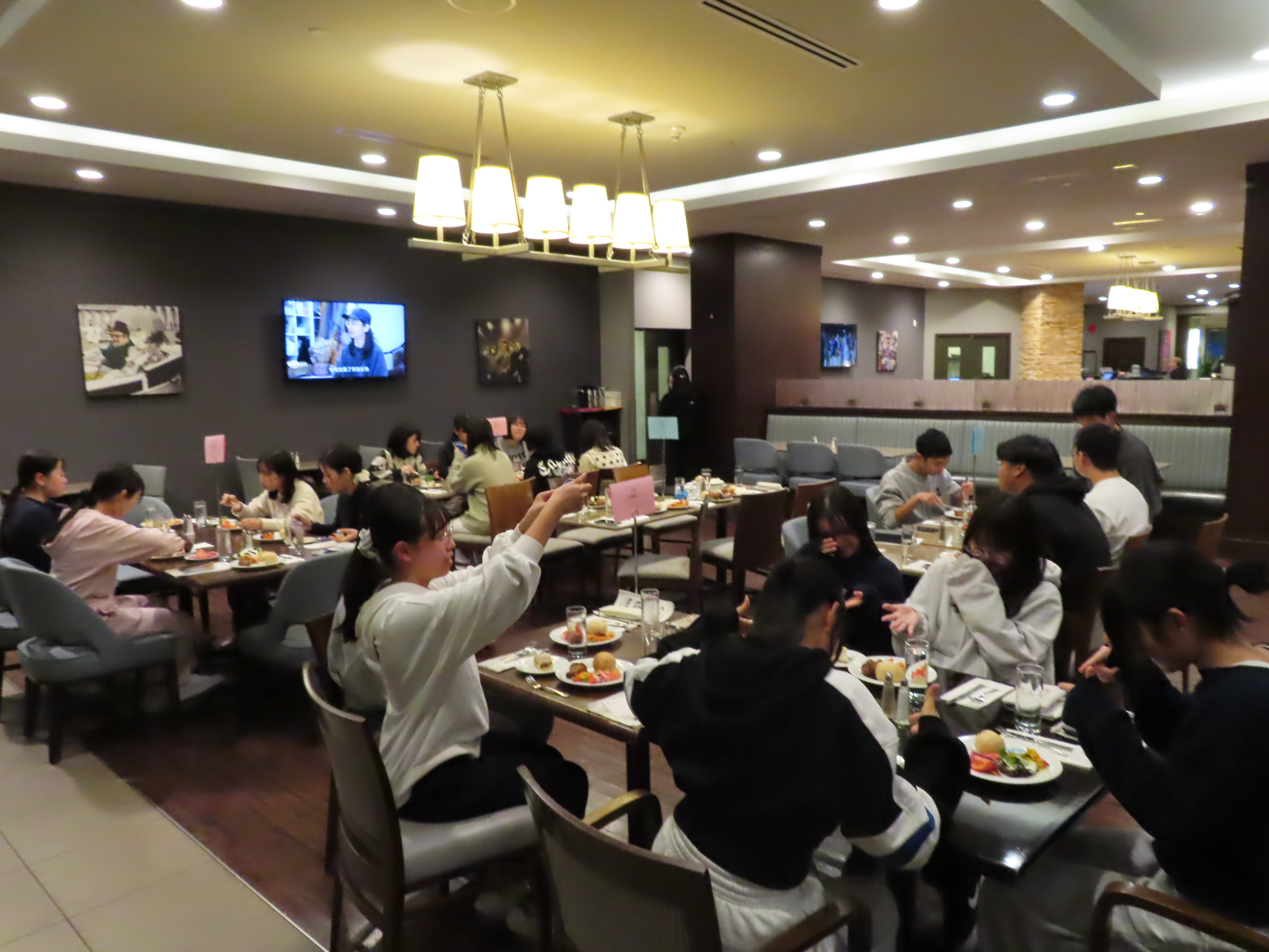 It is a large forest park with scenery that looks straight out of a movie. Students had fun posing for photos and admiring the amazing views. However, jet lag is starting to set in. On our way to dinner, excitement slowly turned into tired smiles as everyone recharged. During dinner, one more classmate who could not join us took part by phone, which made it feel as if the whole group was together. Although many students were clearly tired, their smiles remained, and everyone enjoyed the delicious meal! Time to get some sleep, before another busy day!