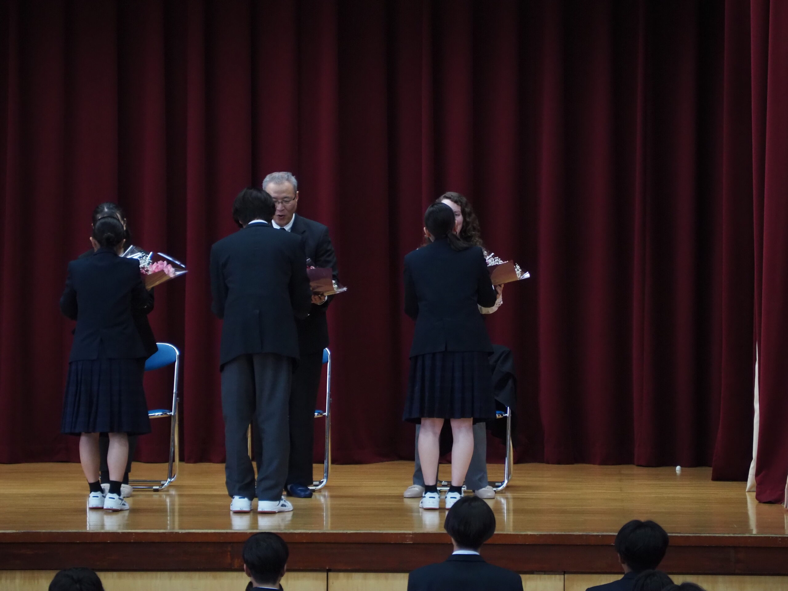 4月10日に行われた離任式では、4月より新しい環境でご活躍されている先生方から、三木高校への思いが込められたお言葉をいただきました。