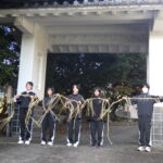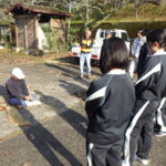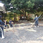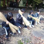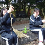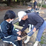 今年度の森林調査グループは御殿山を活動拠点として、取り組んでいます。今回は、御殿山の入り口門にある古くなったしめ縄を新しいものに交換したいということで、井端様、黒野様からお声がけいただきました。当日は坂本様が講師となり、しめ縄の作り方を教えてくださいました。生徒には初めての体験だったため、最初は上手くいかずやり直す姿が見られましたが、終わり頃にはスムーズにできるようになりました。何事も経験ですね!