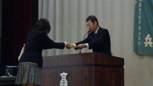 令和7年度 2学期終業式 NT 2025年12月25日 令和7年度 2学期終業式 へのコメントはまだありません 12月24日(水)に、2学期終業式を行いました。 予定よりも5分早く集合し、スムーズに式を進めることができました。 今回は、3名の生徒が表彰伝達を受けました。 以下はその様子です。