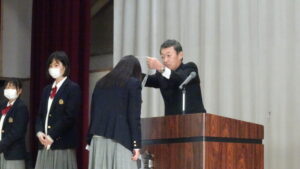 令和7年度 マラソン大会表彰式 西宮南 高等学校 2026年2月6日 令和7年度 マラソン大会表彰式 へのコメントはまだありません 2月5日(木)に先日行われたマラソン大会の表彰式が行われました。 男女ともに20位内に入賞した生徒が表彰されました。 また、平均タイム上位の2クラスも表彰されました。