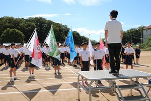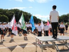 今年度は新種目のボール運びリレーが加わり、本番に向けて各種目ごとの入退場や競技内容の確認をしながら、練習に取り組みました。本番さながらの盛り上がりで、アナウンスの実況にも熱が入り、応援する生徒は自然と大きな声が出ていました。