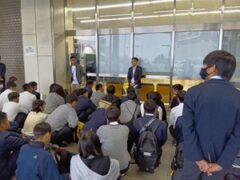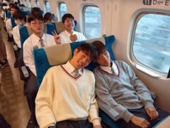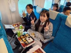 全員遅れることなく、新幹線に乗り込みました。学校からお見送りの先生も来てくださり横断幕でメッセージをおくってくださいました。