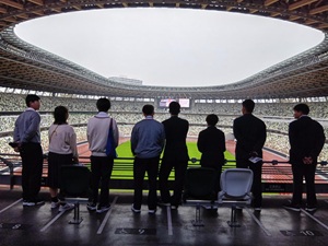 でも雨が気にならない国立競技場の見学。