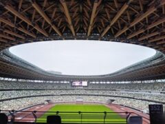 でも雨が気にならない国立競技場の見学。