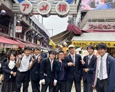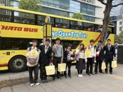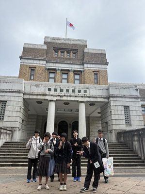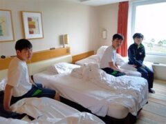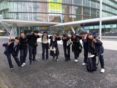 生徒たち疲れた様子も見せず、全員元気にホテルを、出発しました。