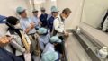まずは、本校の養護教諭による説明と実演を真剣に観察し、沐浴に関するポイントをメモに取り、体験準備を整えました。