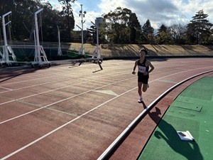 3000m走では、2000mまでペースメーカーについて走り、ペースメーカーが外れてからは、前を走る選手の背中を追いかけて、1年生男子が3位に入りました。