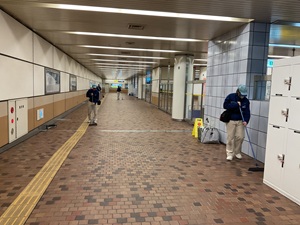 メンテナンス・物流コースの3年生7名が新神戸駅・三宮駅の清掃活動を行いました。