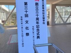 1月23日(金)、県立高等特別支援学校30周年記念式典に出席いたしました。1部の式では、特別支援学校の職業科として、これまで県の職業教育を引っ張ってきた伝統や思いを感じました。2部では、最初に3名の生徒による、スピーチがありました。学校生活のこと、将来のこと、普段感じていることなどが伝わる素晴らし内容でした。最後に全校合唱があり、全員の息が合った美しく力強い演技を鑑賞できました。生徒が、いろいろな役割を担い、生徒主体の式典になっていました。