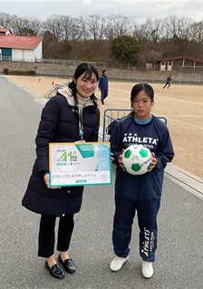 1月21日(水)、明治安田生命保険相互会社(神戸支社)様による毎年県立学校へサッカーボール寄贈している事業で、今年度は本校が選ばれました。全国大会(もうひとつの高校選手権)前に来ていただき、贈呈式を行いました。今後の部活動で大事に使っていきたいです。ありがとうございました。