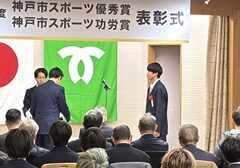 表彰式は厳かな雰囲気のなか、神戸市長から楯を授与されました。