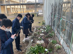 そのような中でも、本校のサスティナブルガーデンでは確かな季節の移ろいが見られます。バラの枝先には小さな芽がふくらみ始め、クリスマスローズにも萌芽(ほうが)のきざしが見えてきました。寒さの中で静かに力を蓄えてきた植物たちが、少しずつ春への準備を進めている様子がうかがえます。