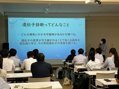 9月23日(火)、本校にて、五国SSH(スーパーサイエンスハイスクール)連携プログラム「DNA情報を探究活動に利用する」を実施しました。このプログラムでは、参加生徒が自分自身の口腔上皮からDNAを抽出し、PCR法(ポリメラーゼ連鎖反応)を用いて、ALDH2(アルデヒド脱水素酵素)および嗅覚受容体遺伝子OR6A2の解析を行いました。当日は小野高校の生徒だけでなく、他校からの参加者も加わり、学校の枠を越えて活発な意見交換が行われました。高度な内容の実験ではありましたが、生徒たちは積極的に取り組み、「遺伝子や遺伝子診断への興味がより深まった」といった声も多く聞かれました。専門的な内容に挑戦する中で、生徒たちにとって大変充実した一日となったと思います。