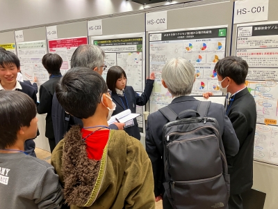 11月3日(月)、国立京都国際会館にて開催された第98回日本生化学会大会において、高校生ポスター発表に参加しました。本校では、科学探究科・生物部の6名が、クロモジやスミレ、ヒメタイコウチなどを対象に、日々実験・研究活動に取り組んでいます。今回は、その研究成果をポスター形式で発表しました。また、同大会では、ノーベル賞受賞者の本庶 佑先生をはじめ、著名な先生方による最先端の研究発表や講演を拝聴する貴重な機会もあり、大変有意義な時間を過ごすことができました。